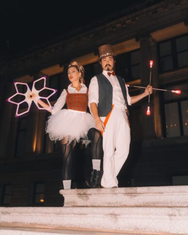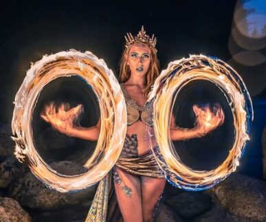 Specializing in fire spinning, hula hoops, fans, poi, dragon staff, and partner choreography, this dynamic pair fuses diverse movement styles—from contemporary and hip hop to belly dance fusion—into their circus flow. Whether captivating an intimate crowd or energizing a massive outdoor event, the TwinFlames delivers unforgettable visual spectacle, seamless synchronicity, and an undeniable spark.